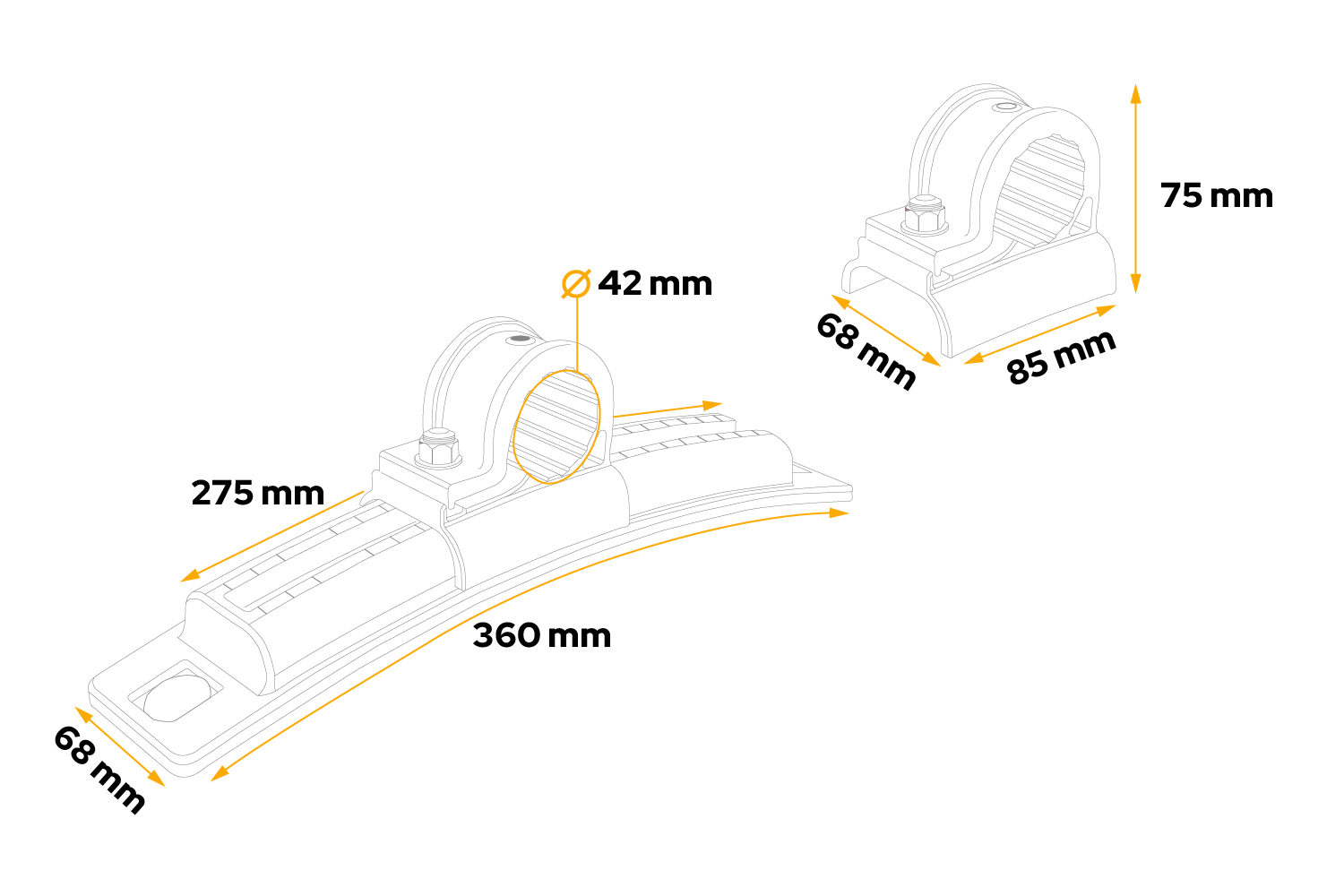 - Die verstellbare Kotflügelhalterung DK8145 von DOMAR ermöglicht eine stabile und langlebige Befestigung des Kotflügels. Die Länge der Halterung beträgt 360 mm, der Durchmesser der Klemme 42 mm, wodurch die Kotflügelposition präzise an verschiedene Fahrzeu