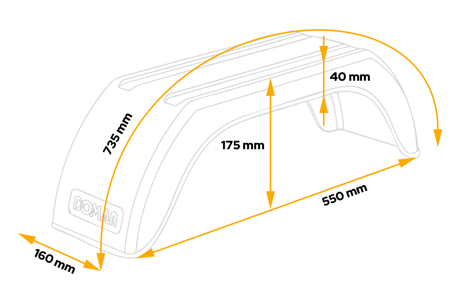 - Der einzelne Kotflügel D20100 DOMAR ist für Räder von 8 bis 10 Zoll ausgelegt, hat eine Länge von 550 mm und eine Breite von 160 mm. Er schützt Anhänger und Ladung vor mechanischen Beschädigungen und andere Verkehrsteilnehmer vor Schlammspritzern oder Ste