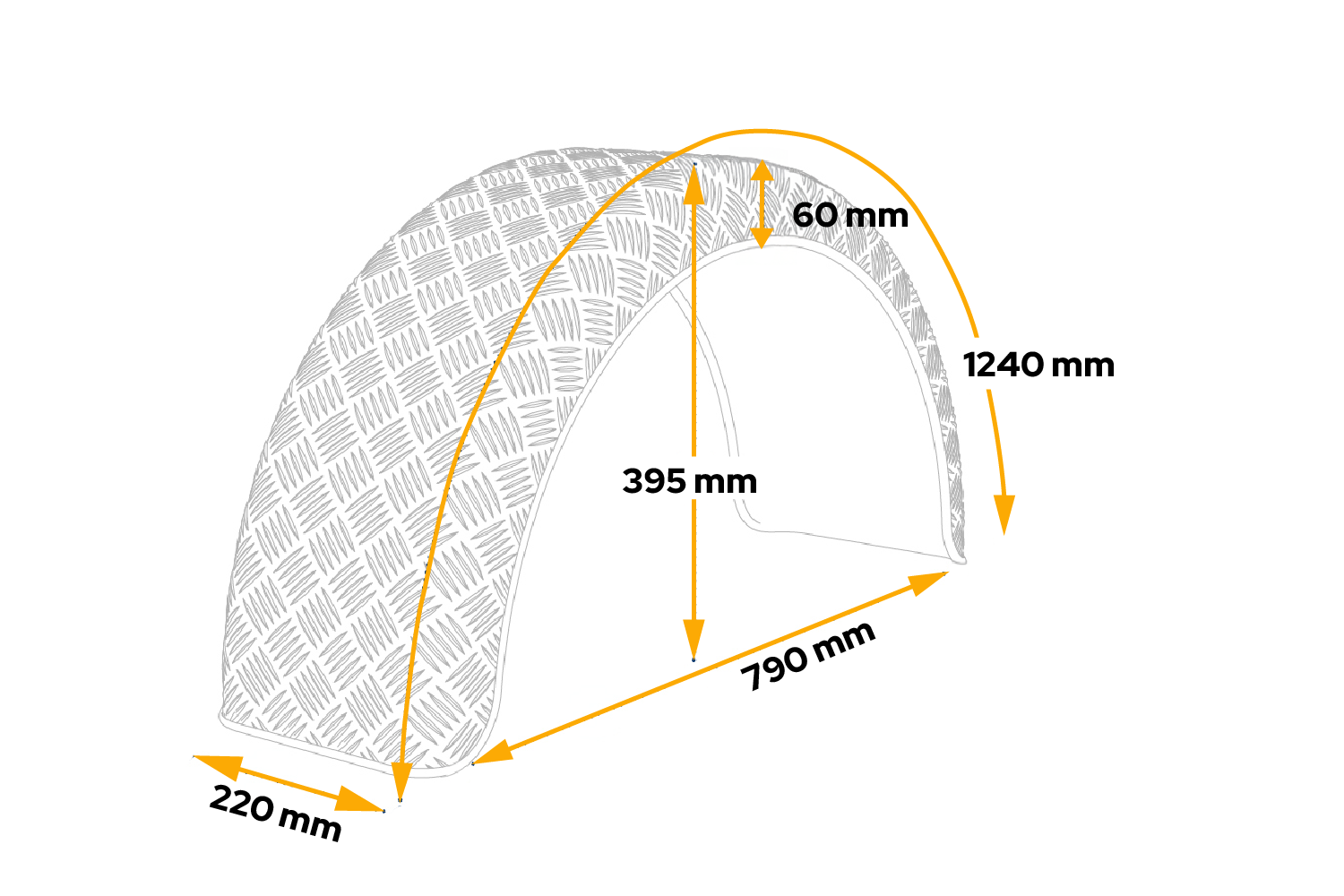- Der Aluminium-Einzelkotflügel D29130 DOMAR ist für 15- und 16-Zoll-Räder konzipiert, hat eine Länge von 790 mm und eine Breite von 220 mm. Er schützt Anhänger und Ladung vor mechanischen Beschädigungen und andere Verkehrsteilnehmer vor Schlammspritzern od