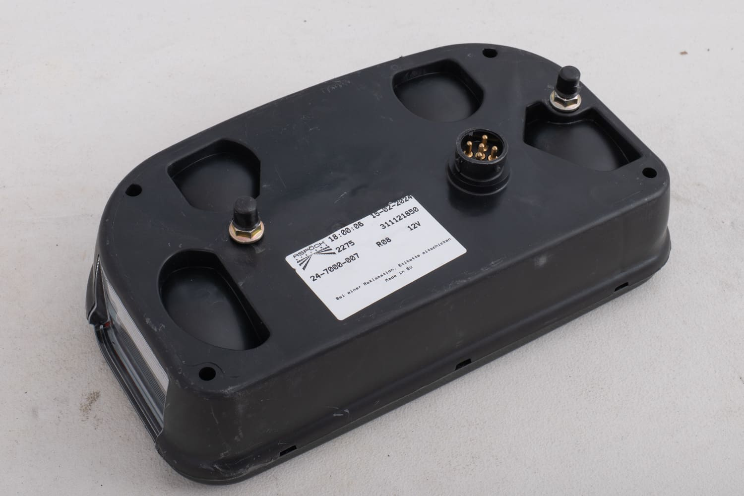 Die Multipoint II Heckleuchte von ASPÖCK ist für die Montage auf der linken Fahrzeugseite konzipiert und zeichnet sich durch folgende Maße aus: Breite 240 mm, Höhe 140 mm, Tiefe 52 mm . Ausgestattet mit einem 5-poligen Bajonettanschluss ermöglicht sie eine einfache und schnelle Montage. in Anhängern, Bussen oder Anhängern .
