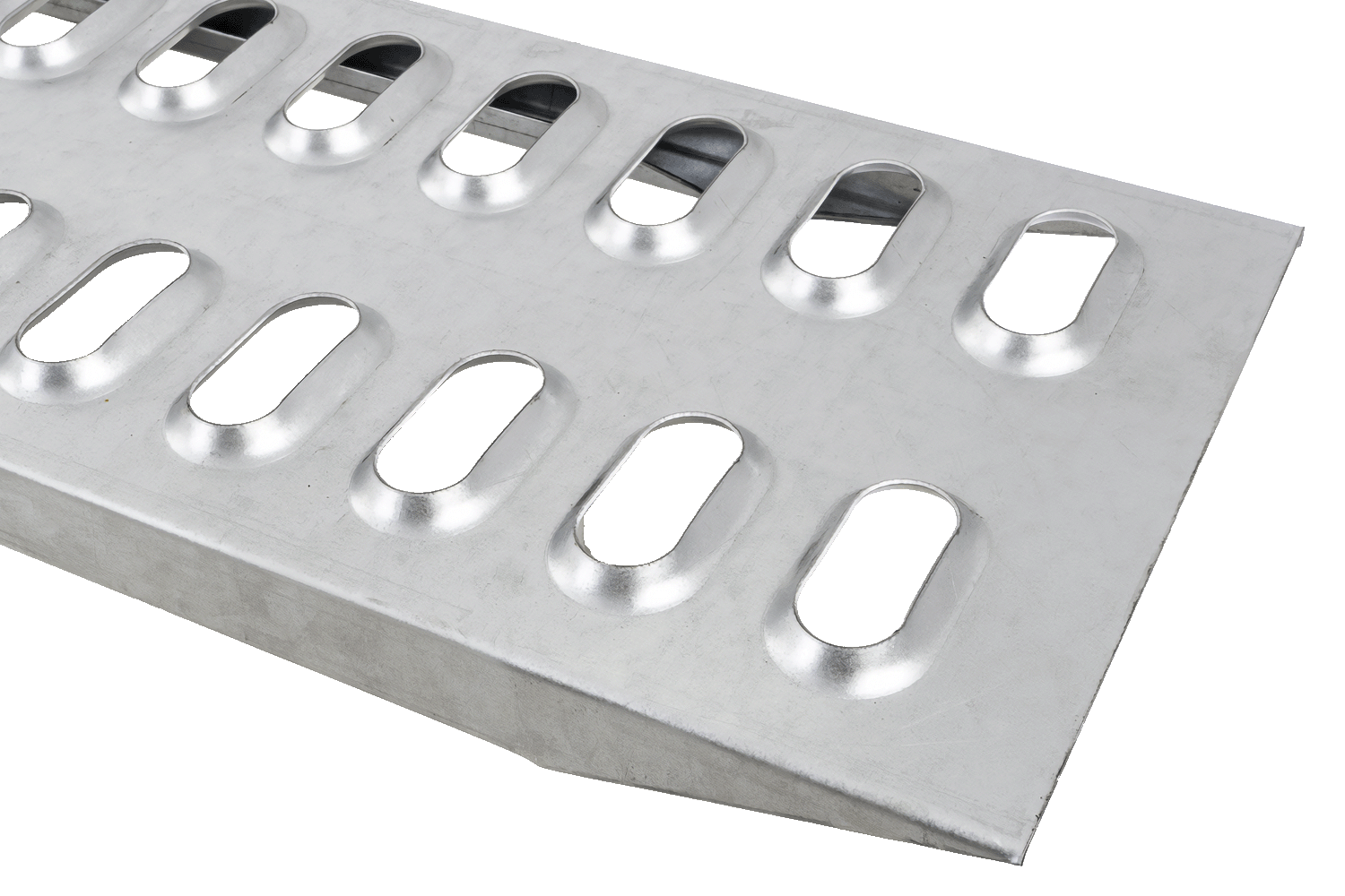 Die 150 cm lange und 22 cm breite CHORUS- Rampe ist eine langlebige und funktionale Ausrüstung für Anhänger und Pritschenwagen und eignet sich zum Beladen von leichten Geräten wie Rasenmähern, Quads, Rollern und Karren. Die Tragfähigkeit einer einzelnen Rampe beträgt 120 kg , während die Verwendung von zwei Rampen zusammen eine Tragfähigkeit von bis zu 240 kg erreichen kann. Sie besteht aus 1,5 mm starkem verzinktem Stahl und gewährleistet so hohe Korrosionsbeständigkeit und Langlebigkeit unter rauen Bedingungen. Die offene, perforierte Oberfläche der Rampe gewährleistet gute Traktion und sicheren Betrieb auch unter schwierigen Bedingungen.