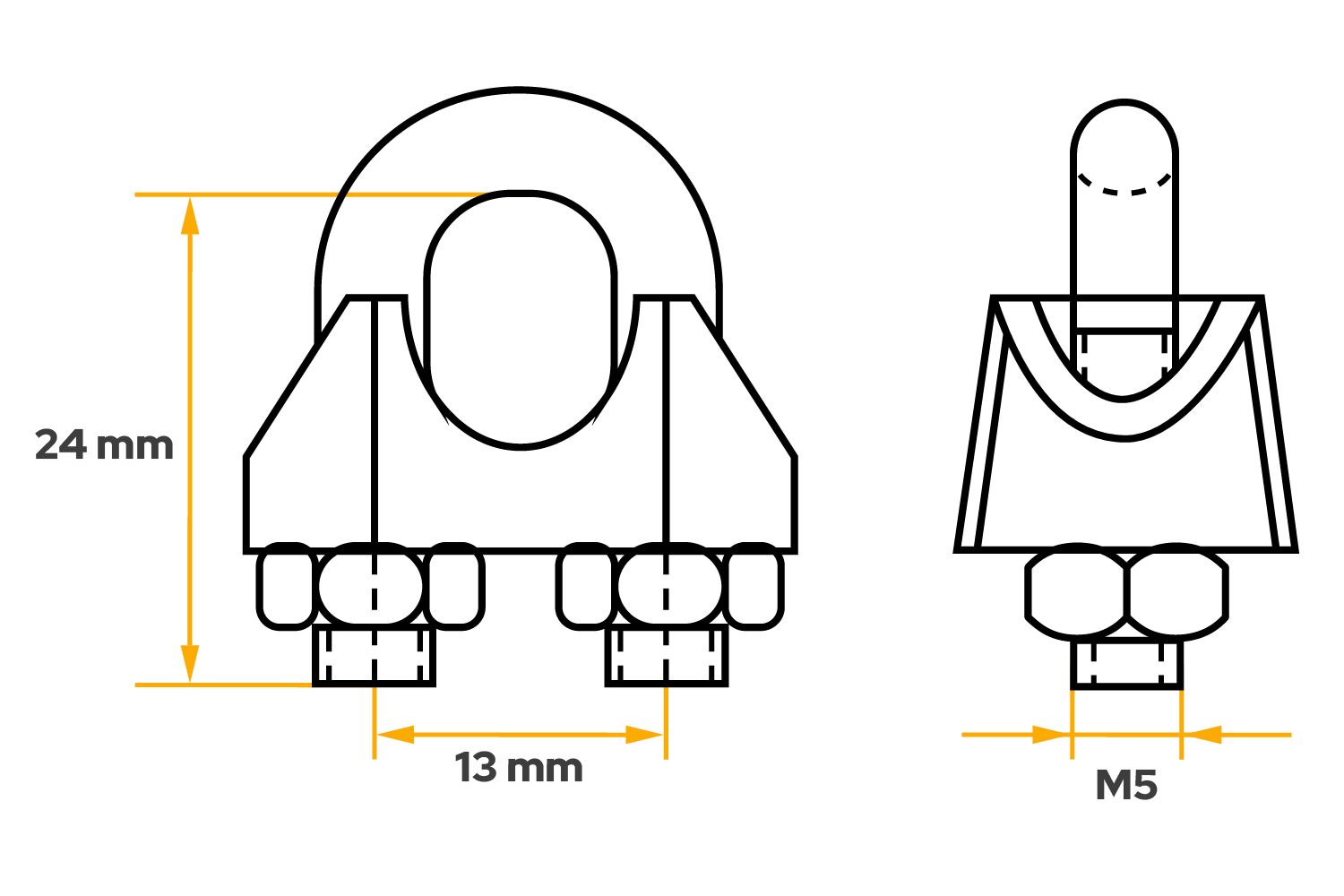 - Die DROMET-Seilklemme ZL.6 verfügt über ein M5-Gewinde und eine Höhe von 28 mm. Sie ist zum Klemmen von Stahlseilen mit einem Durchmesser von 6 mm ausgelegt. Sie dient zum sicheren Verbinden, Bilden von Schlaufen und Fixieren von Stahlseilen.