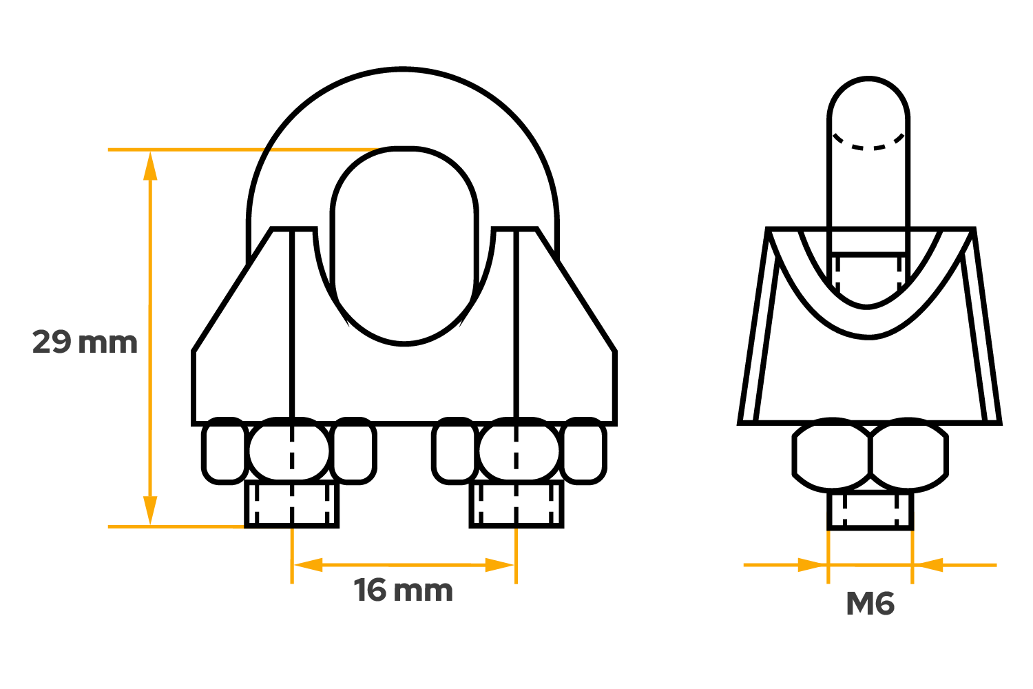 - Die DROMET-SeilklemmeZL.8 verfügt über ein M6-Gewinde und eine Höhe von 34 mm. Sie ist zum Klemmen von Stahlseilen mit einem Durchmesser von 8 mm ausgelegt. Sie dient zum sicheren Verbinden, Bilden von Schlaufen und Fixieren von Stahlseilen.