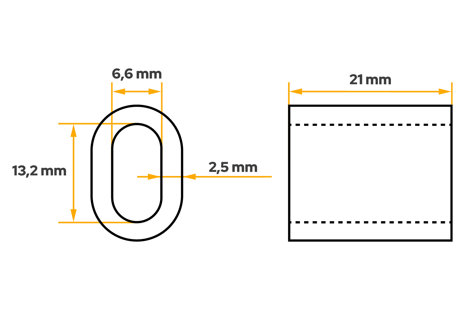 Die Seilpressklemme ZLA.6 von DROMET ist zum Klemmen von Stahlseilen mit einem Durchmesser von 6 mm konzipiert. Das Produkt verfügt über Innenhülsenabmessungen von 6,6 × 13,2 mm und eine Gesamtlänge von 21 mm , was eine präzise und dauerhafte Platzierung des Seils ermöglicht. Er wird hauptsächlich bei der Herstellung von Seilschlingen eingesetzt und ermöglicht die effektive Herstellung von Schlaufen und Verbindungen in Befestigungssystemen.