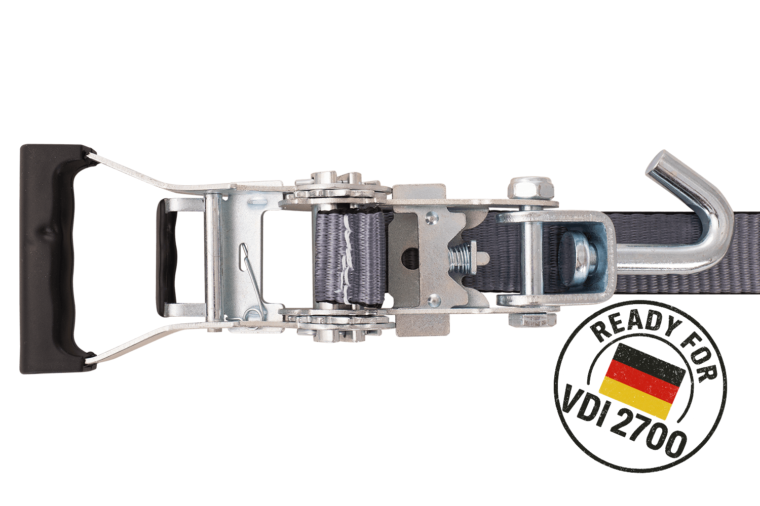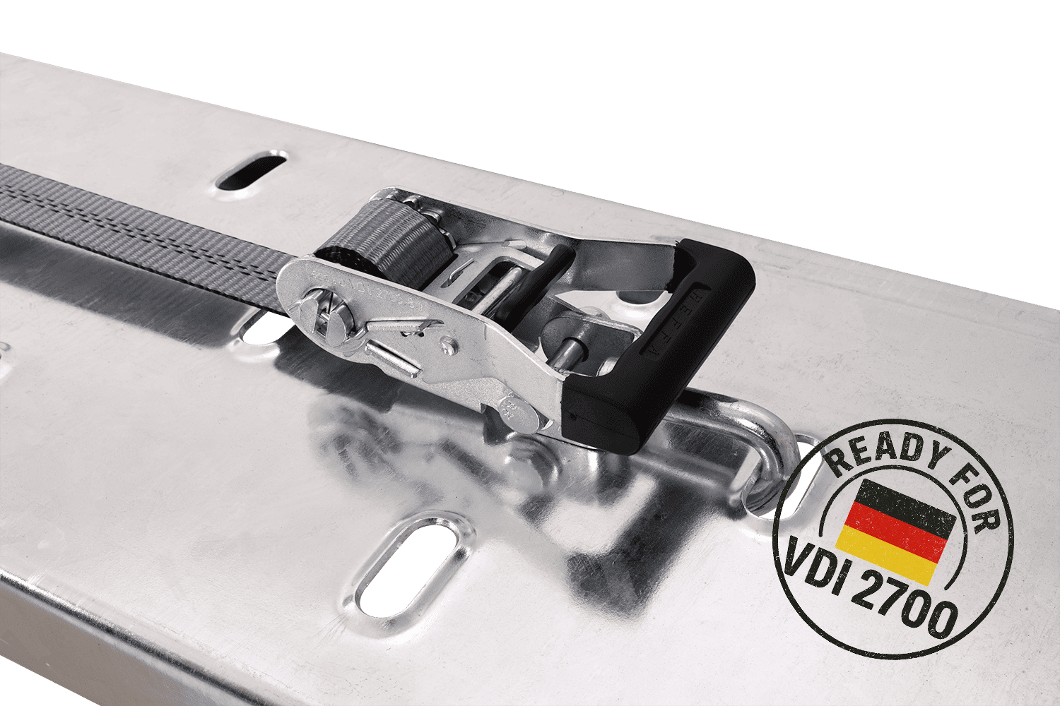 Die Richtlinie VDI 2700 Teil 8.1 ist eine deutsche technische Norm, die detaillierte Anforderungen an die Sicherung von auf Pritschenanhängern und Anhängern transportierten Fahrzeugen festlegt. In Bezug auf Zurrgurte mit Radumreifung legt diese Richtlinie unter anderem die Art der Gurtanordnung, die erforderliche Anzahl von Zurrpunkten (z. B. 3-Punkt-System), Mindestspannkraftparameter und die Grundsätze ihrer Kennzeichnung und technischen Zulassung fest. Die Konformität mit VDI 2700 8.1 bedeutet, dass die Gurte strenge Anforderungen in Bezug auf Sicherheit, Zuverlässigkeit und Wirksamkeit der Immobilisierung des transportierten Fahrzeugs erfüllen, was für den professionellen Transport von Personenkraftwagen und Lieferwagen von entscheidender Bedeutung ist. Dadurch kann der Benutzer sicher sein, dass das verwendete Zurrsystem den aktuellen europäischen und deutschen Normen im Bereich der Verkehrssicherheit entspricht.