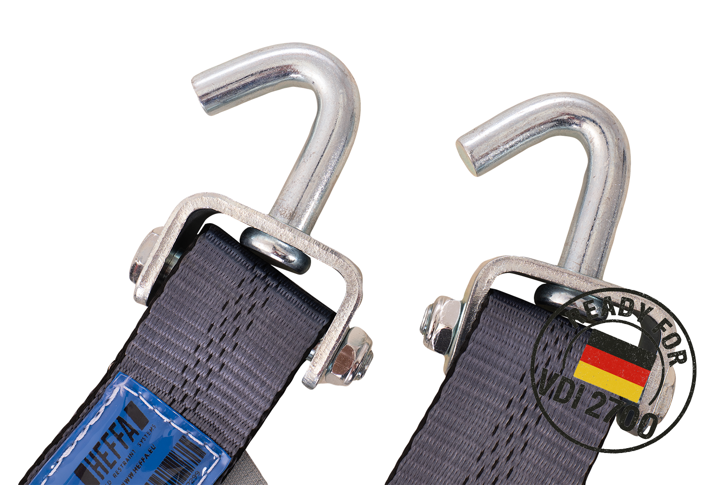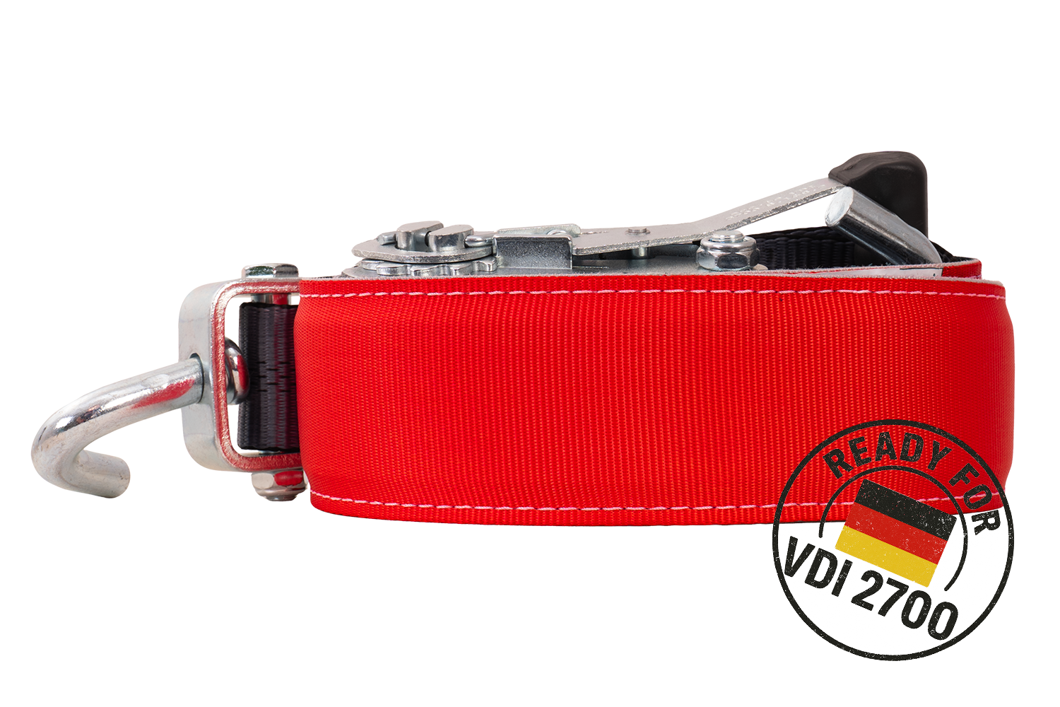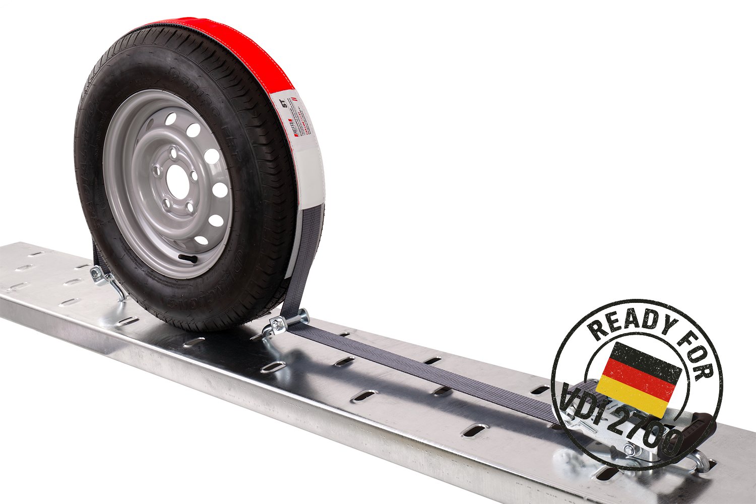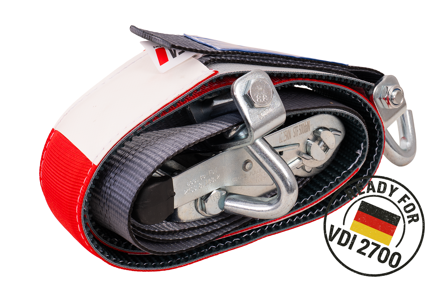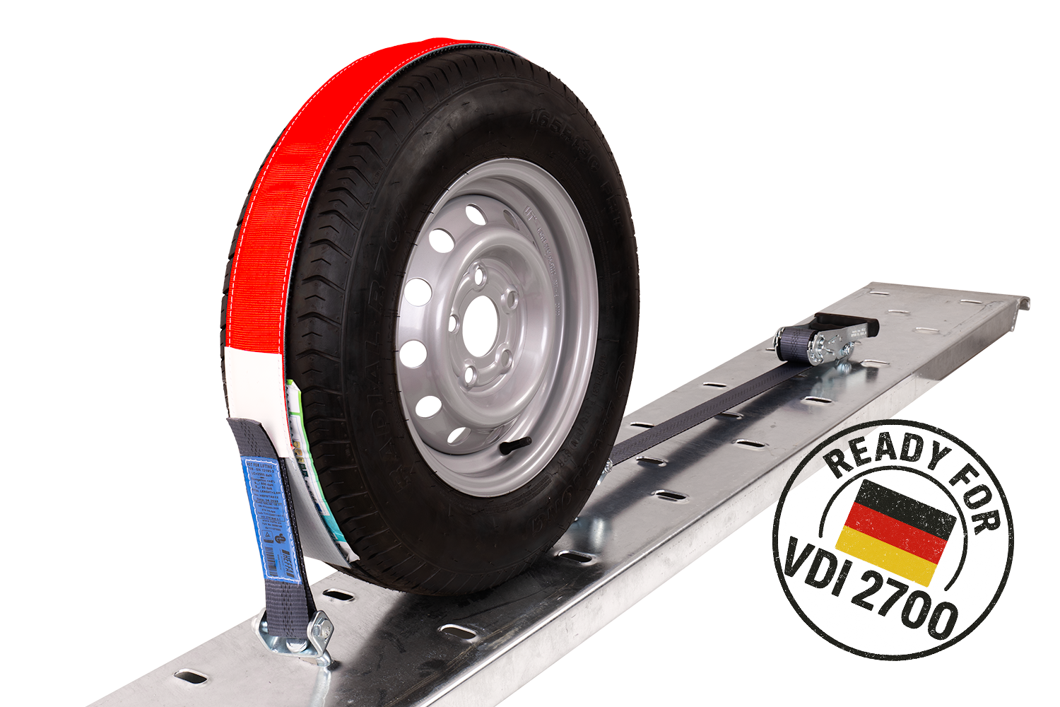 Die Richtlinie VDI 2700 Teil 8.1 ist eine deutsche technische Norm, die detaillierte Anforderungen an die Sicherung von auf Pritschenanhängern und Anhängern transportierten Fahrzeugen festlegt. In Bezug auf Zurrgurte mit Radumreifung legt diese Richtlinie unter anderem die Art der Gurtanordnung, die erforderliche Anzahl von Zurrpunkten (z. B. 3-Punkt-System), Mindestspannkraftparameter und die Grundsätze ihrer Kennzeichnung und technischen Zulassung fest. Die Konformität mit VDI 2700 8.1 bedeutet, dass die Gurte strenge Anforderungen in Bezug auf Sicherheit, Zuverlässigkeit und Wirksamkeit der Immobilisierung des transportierten Fahrzeugs erfüllen, was für den professionellen Transport von Personenkraftwagen und Lieferwagen von entscheidender Bedeutung ist. Dadurch kann der Benutzer sicher sein, dass das verwendete Zurrsystem den aktuellen europäischen und deutschen Normen im Bereich der Verkehrssicherheit entspricht.