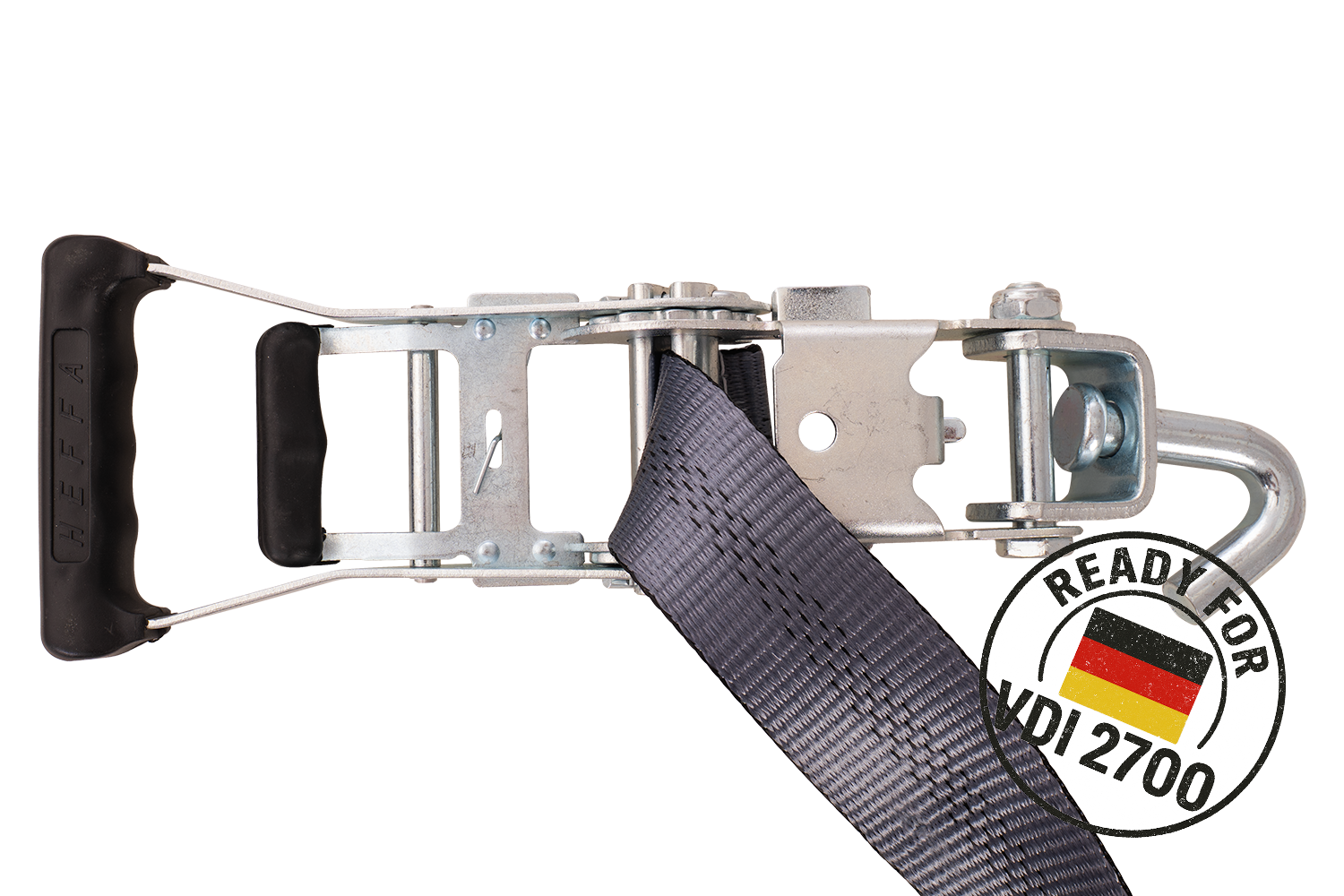 Dies ist eine europäische Norm, die die Anforderungen an Zurrgurte mit manuellem Spanner zur Ladungssicherung im Straßenverkehr festlegt. Die Norm EN 12195-2 definiert unter anderem die Werte für Spannkräfte (SHF), Zurrkraft (LC), Gurtfestigkeit, dynamische Prüfungen und die Art der Produktkennzeichnung. Nach dieser Norm zertifizierte Gurte erfüllen alle europäischen Sicherheitsanforderungen und können in der gesamten EU legal verwendet werden.