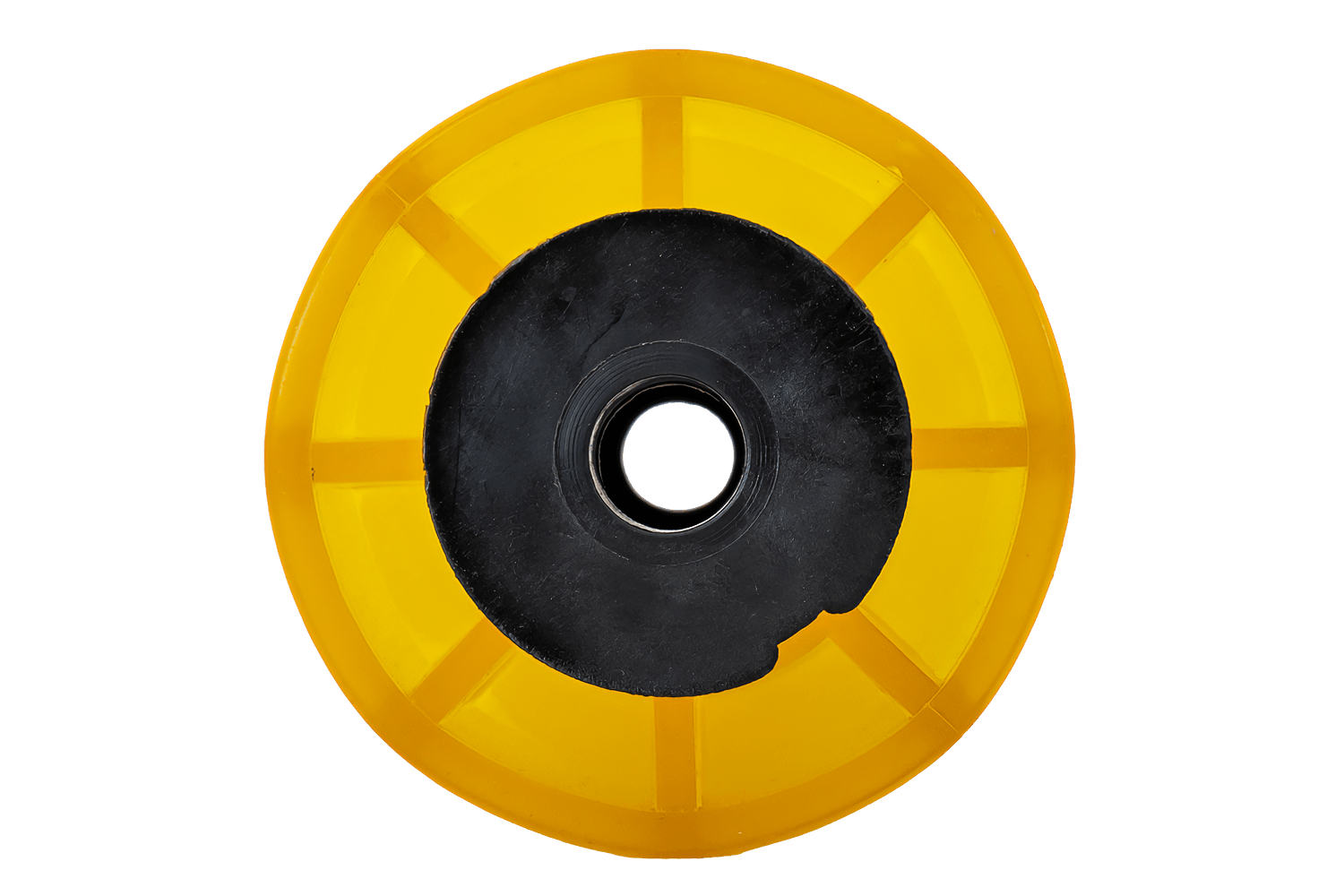 Kielrolle für Bootstrailer von KNOTT, in gelb, aus Polvinyl, Breite 190 mm, Außendurchmesser 90 mm, Durchmesser mittig 61 mm, Lochdurchmesser 17 mm.