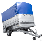 Einachsiger Anhänger auf Blattfedern 230x125 UNITRAILER FORCE 230/R KIPP mit BIS-Seitenwänden, H-800-Rahmen und blauer Plane