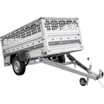 Einachsiger Anhänger auf Blattfedern 264x125 UNITRAILER FORCE 264/R KIPP mit Gitterseitenwänden, H-0-Rahmen und grauer Plane