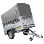 GARTENANHÄNGER 230 KIPP MIT STÜTZRAD, GITTERWAND UND GRAUER FLACHPLANE