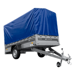 Leichter Anhänger 230x125 UNITRAILER FORCE 230 KIPP mit BIS-Seitenwänden, H-0-Rahmen und blauer Plane