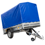 PKW-Anhänger auf Blattfedern 230x125 UNITRAILER GARDEN 230/R KIPP mit H-1100 Rahmen und blauer Plane