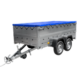 GARDEN TRAILER 264/2 KIPP Zweiachsanhänger mit Stützrad, Planenträgern, zus. Bordwänden und blauer Flachplane