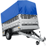 Einachsiger Anhänger auf Blattfedern 264x125 UNITRAILER FORCE 264/R KIPP mit Gitterseitenwänden, H-0-Rahmen und blauer Plane