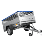 Einachsanhänger 200x125 UNITRAILER GARDEN 201 KIPP mit Gitterseitenwänden und blauer Abdeckung