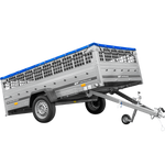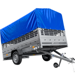 Leichter Anhänger auf Federn 264x150 UNITRAILER GARDEN 265/R KIPP mit Gitterwänden, H-0-Rahmen und blauer Plane