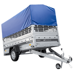Autotransportanhänger auf Federn 264x125 UNITRAILER FORCE 264/R KIPP mit Gitterwänden, H-800 Rahmen und blauer Plane