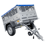 GARTENANHÄNGER 230 KIPP MIT STÜTZRAD, GITTERWAND UND GRAUER FLACHPLANE